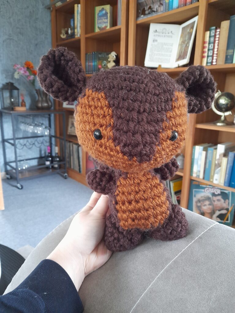 Toen ik de staart van de eekhoorn gehaakt had, viel het mee hoe groot de gaten waren tussen de steken. Waar ik alleen niet aan had gedacht, was dat de staart uiteindelijk dubbelgevouwen moest worden voor een goede vorm. Hierdoor werden de gaten zo groot dat de vulling er bijna doorheen kon komen.